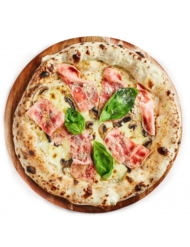Créme fraîche, mozzarella, jambon de dinde, champignon frais, Grana Padano et persillade